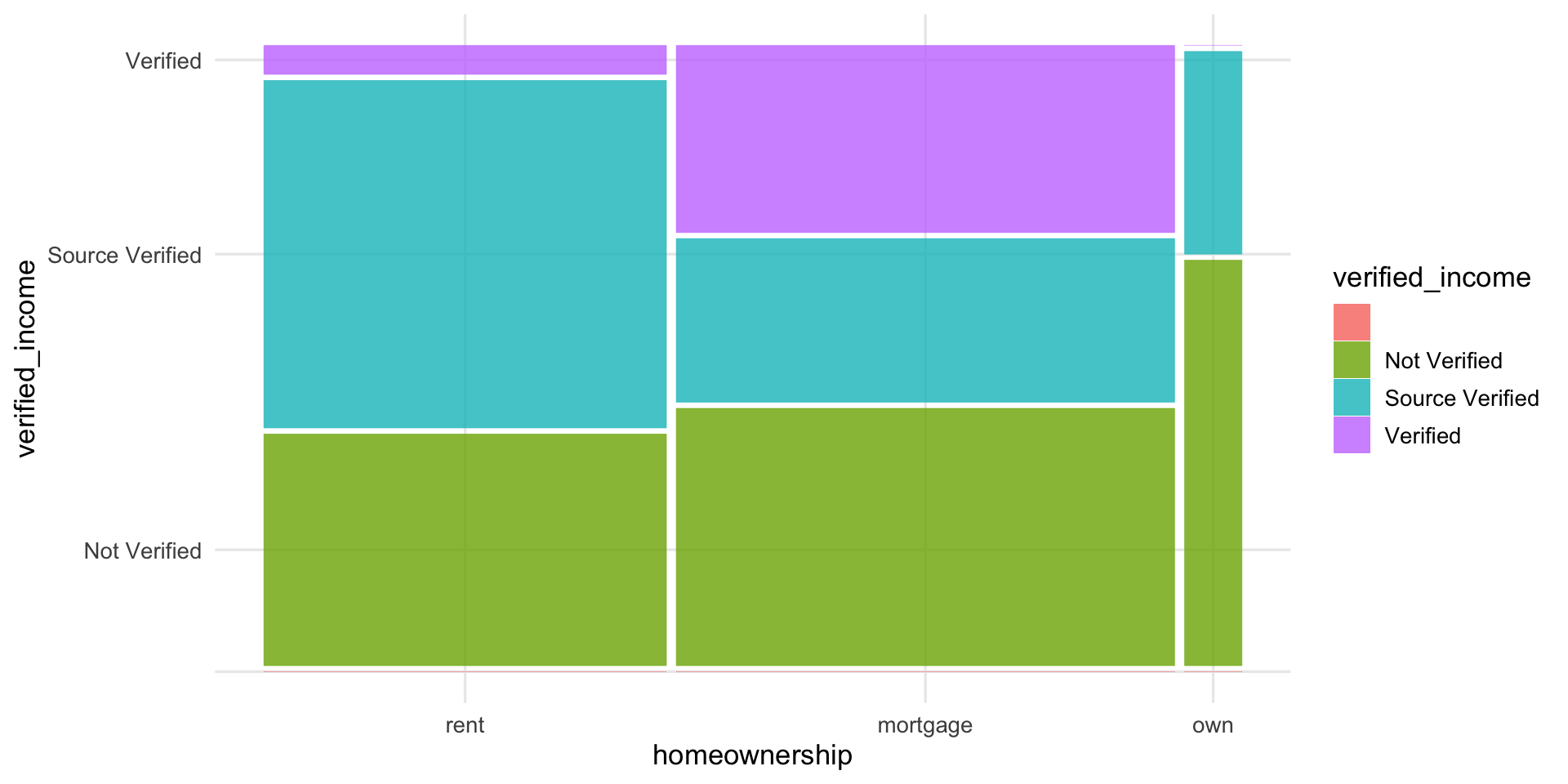 verified_income and grade variables in the loan50 datasetverified_income and grade variables in the loan50 datasetverified_income and grade variables in the loan50 datasethomeownership)Filter for missing values